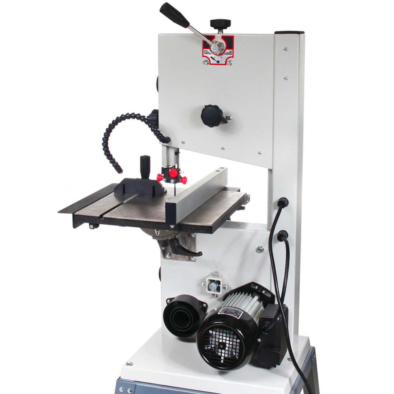 The CX118 features a powerful 1/2HP motor, cast iron table with extension wing, high quality fence and open stand make this band saw light enough to move around in the shop with ease. The precision balanced cast aluminum wheels, ON/OFF switch with safety key and LED work lamp make this band saw a great addition to your shop.